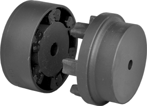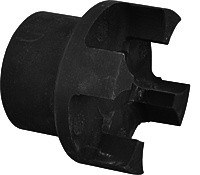 Муфта HRC состоит из: двух чугунных полумуфт (по три кулачка с двух сторон) и резиновой звездочки (эластичный элемент).