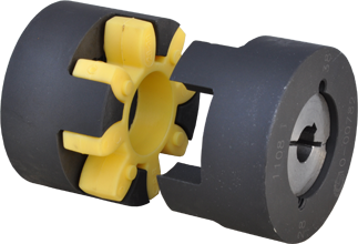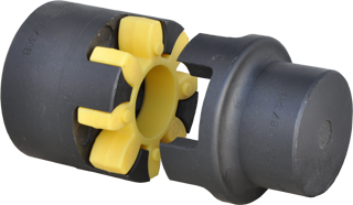 Муфта состоит из: двух алюминиевых полумуфт и эластичного элемента - звездочки (резиновой или полиуретановой).