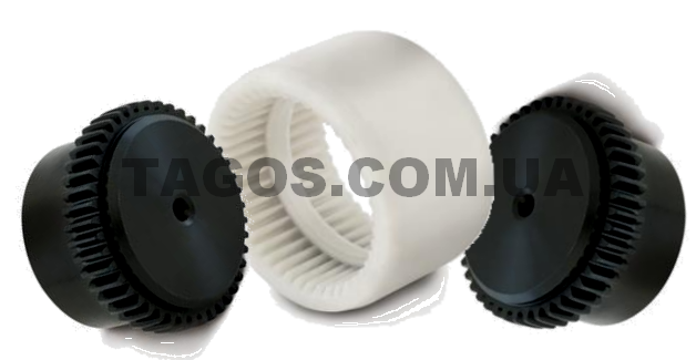 Муфта зубчатая SITEX состоит из - двух полумуфт в виде металлических ступиц с венцами и соединительного полиамидного кольца (демпфирующий элемент). Полиамидное кольцо - втулка с внутренними шлицами, при помощи которых кольцо сцепляется со ступицами.