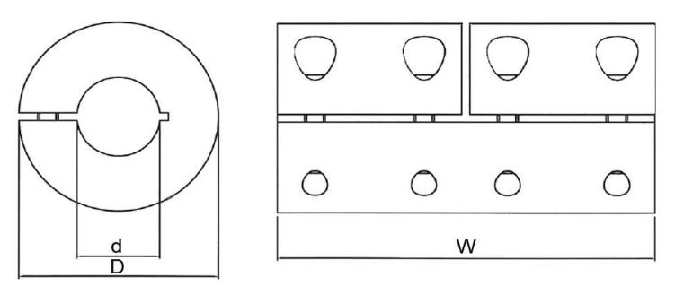 Муфты поставляются с черновыми отверстиями. Принимаются заказы на механическую обработку под посадочное место (отверстие, шпоночный паз, шлицевой паз).
