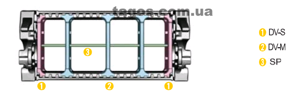 10. Надо ли внутреннее пространство комплектовать дивайдерами DV-M (дивайдер высоты сбоку) DV-S (дивайдер высоты внутри) и сепараторами SP (см. рисунок). Например: на каждом втором звене необходимо 2 дивайдера DV-M и три дивайдера DV-S.